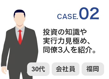 また、誰にでも投資の話をするわけではありません。投資などの知識を持っていて、私の話を聞くだけではなく、話を聞いて「よし、やろう」と動く人でなければ話をしません。だから、実行力のある人かどうかを1~2年かけてよく見て、それから話をするんです。
