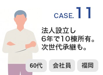 福岡県在住のE様(60代・男性・会社員)は、約6年間で投資物件を10棟(他社含む)購入しました。「当初はこんなに所有する目標はなかった」というE様が、なぜ10棟のオーナーになったのか、その経緯を詳しくうかがいました。