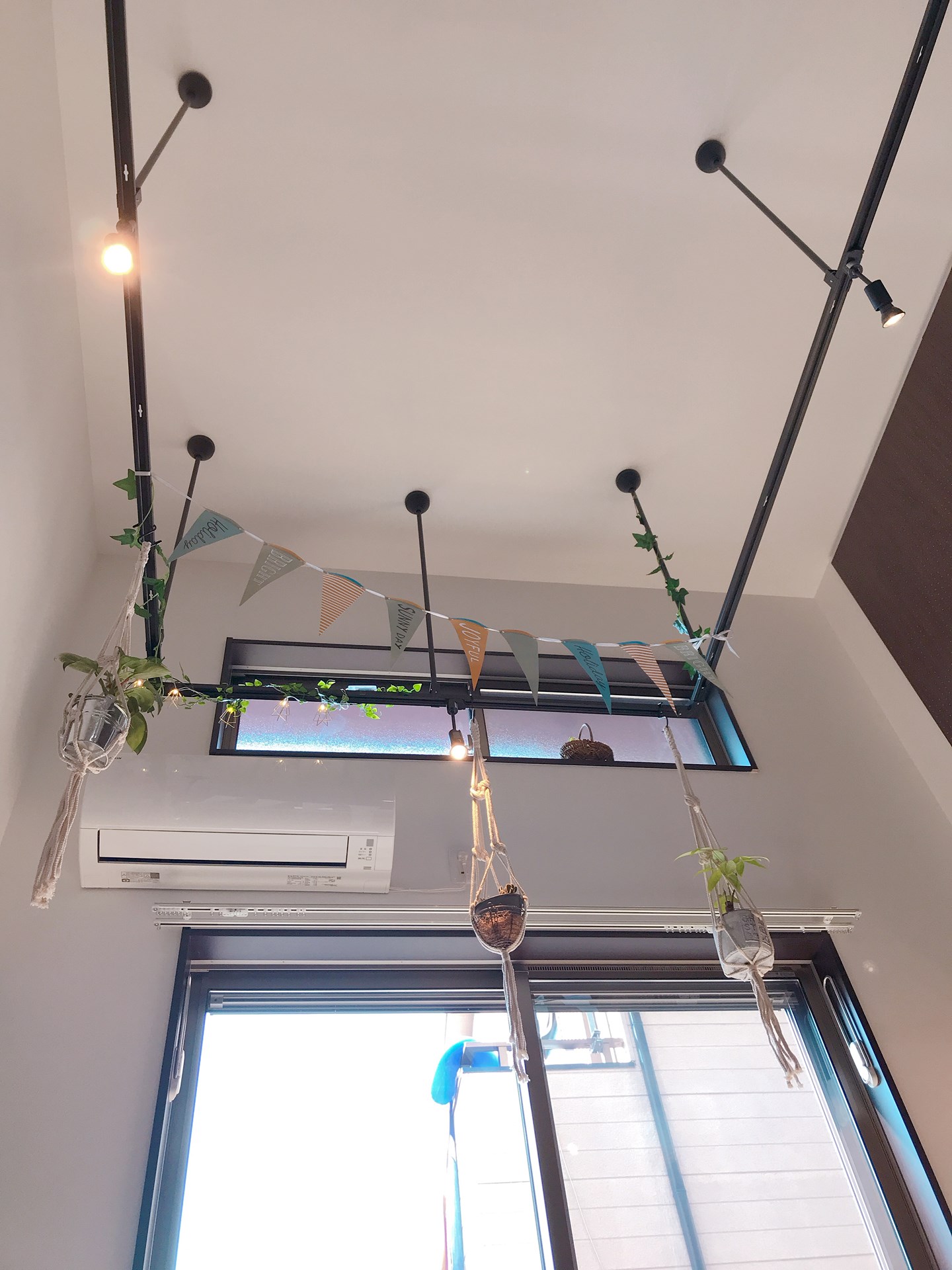 また、こだわりの部屋に平凡なシーリングライトは似合わないのでペンダントライトやスポットライトの設置が出来るライティングレールも準備しました。物件によっては、有孔ボードの他にピンを自由に打てるOSBボードを採用し、無骨な雰囲気に仕上げたものもあります。