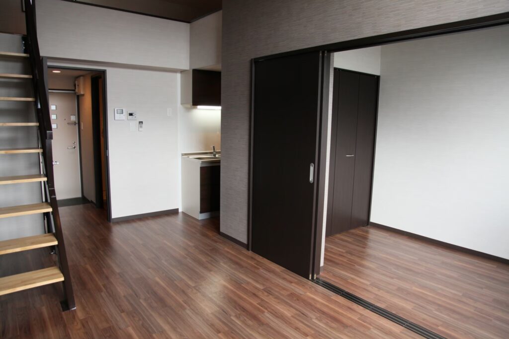 キッチンサイズは1.8m、ユニットバスも1.2mと従来のワンルーム設備より一回り大きいものを採用。脱衣所やクローゼットもゆったりと余裕のあるつくりになっています。また、リビングと洋室の仕切りを外せば、広い一室としても利用が可能。入居者様のライフスタイルに合わせて使い方が広がります。