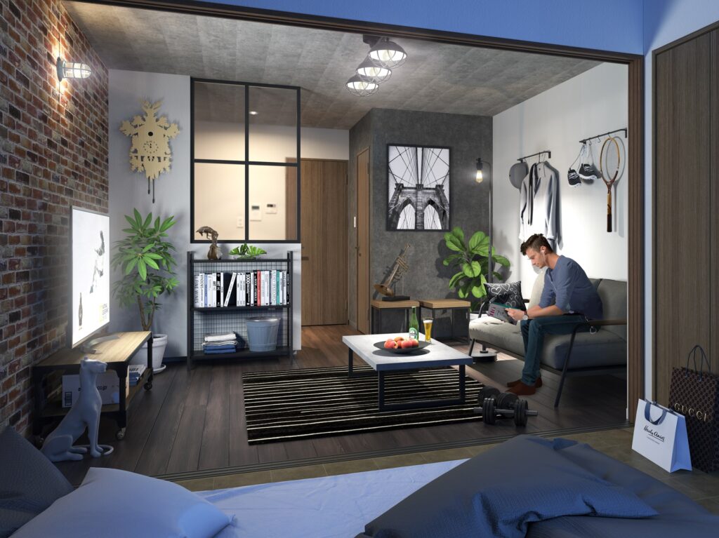 「ブルックリンスタイル」は、ニューヨーク・ブルックリンの古い倉庫やロフトを改装したような、ラフ×無骨(インダストリアル)×ヴィンテージのミックス。レンガ・配管・ダクト・コンクリ壁などの構造を“隠さない”見せ方が特徴です。
