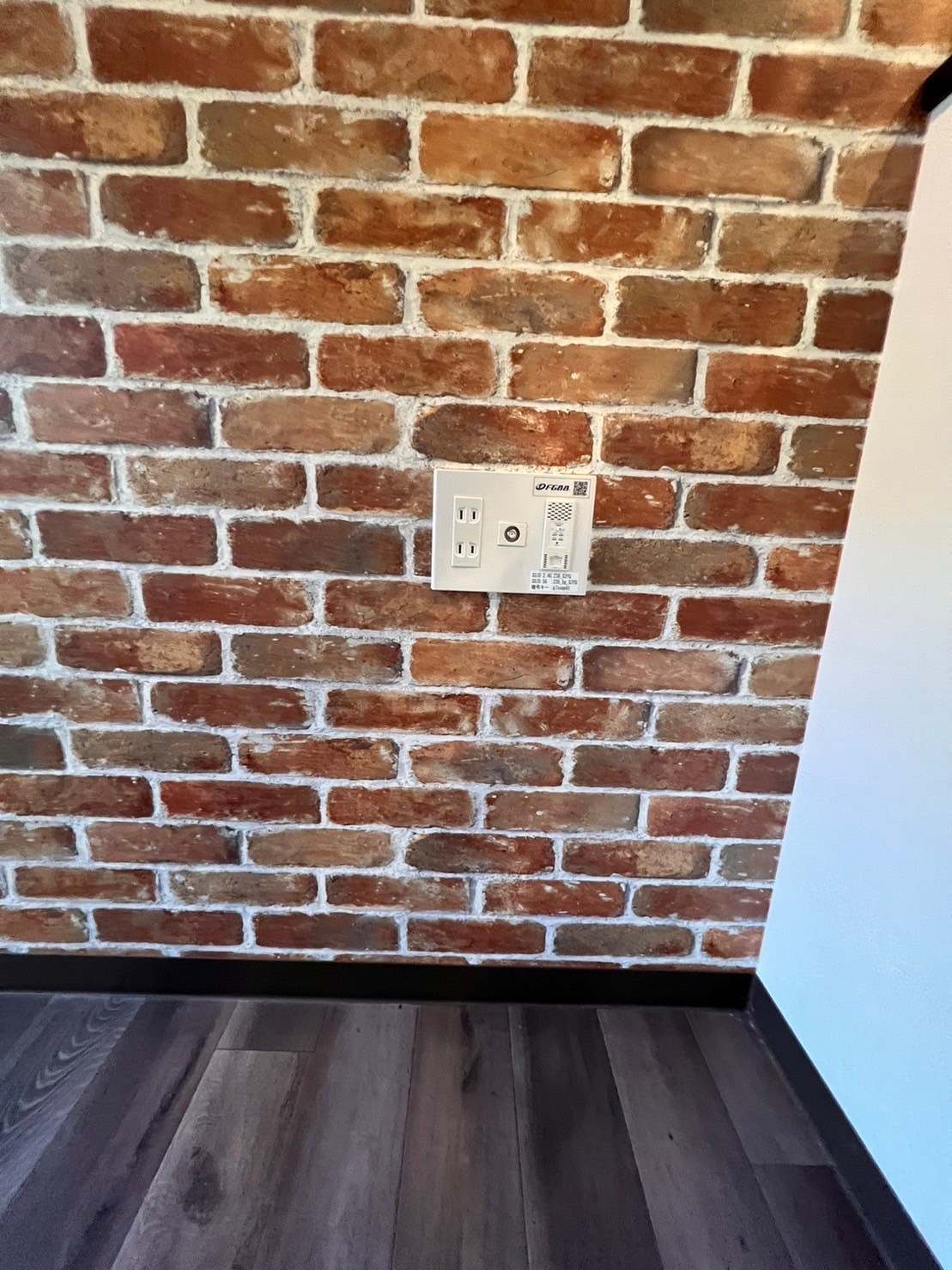 愛和の「ブルックリンプラン」は、フロア・天井クロス・手すり・レンジフード・カーテンレールに至るまで、一見ド派手なレンガ調のクロスが部屋に馴染むように徹底的に「ブルックリンスタイル」に統一されており、細部までこだわりぬいたデザインが、入居者様の心を掴みます。