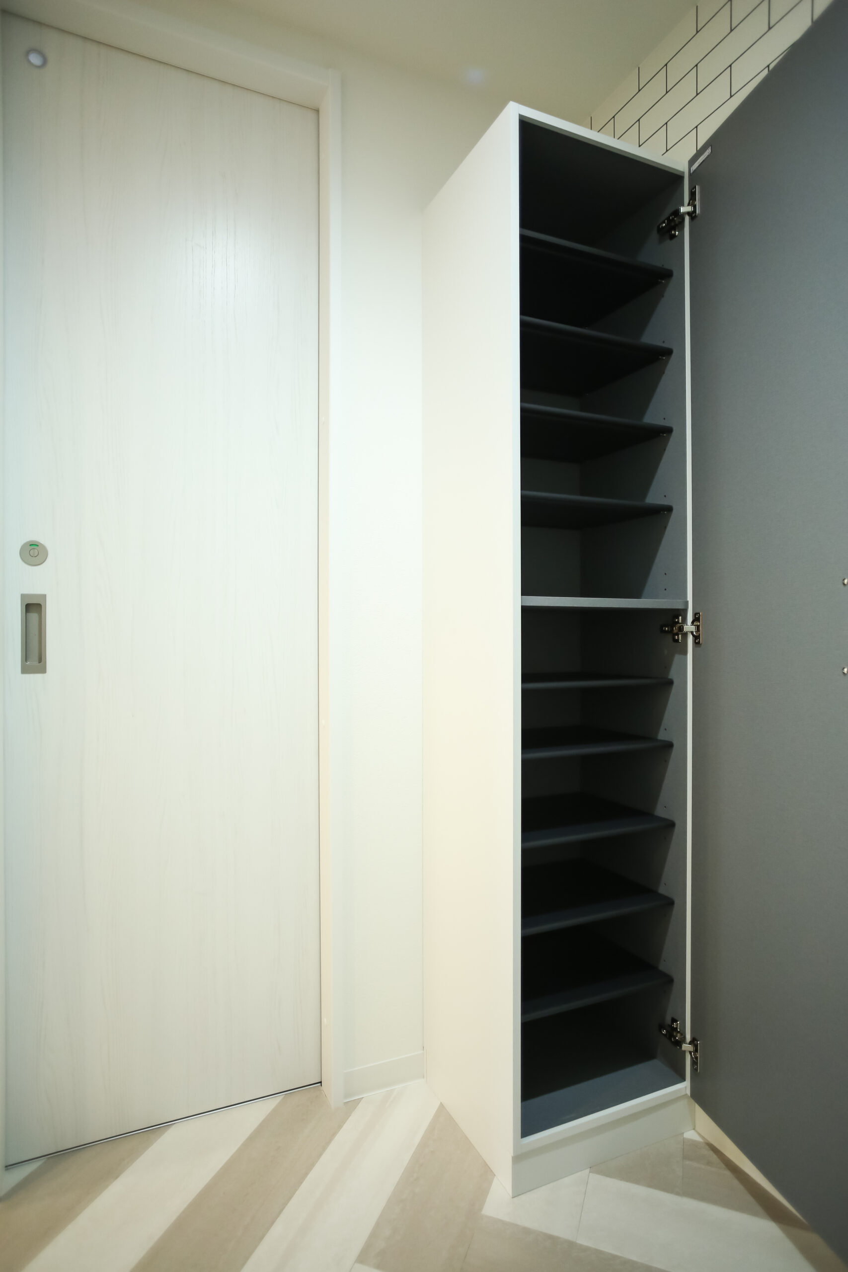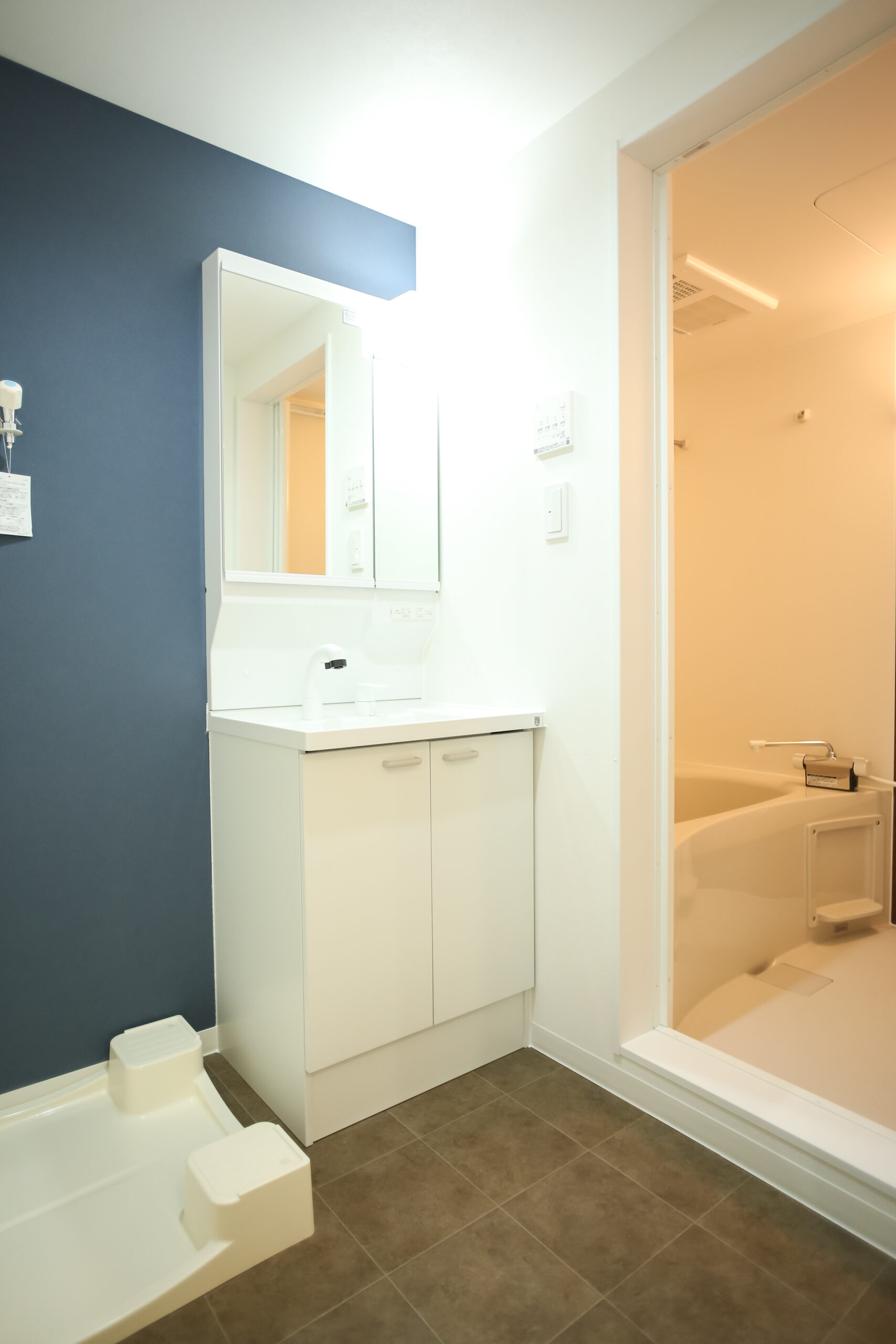 ドアを開けたときの第一印象は大事。カリフォルニアプランは、玄関ドアを開けると爽やかなブルーのクロスがお出迎えします。