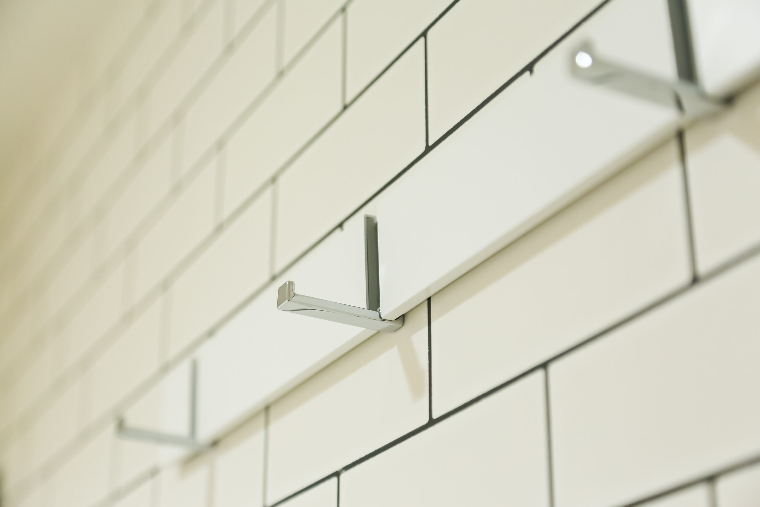 キッチンとリビングの間仕切りにはパーテーションウォールを使用。水回りと生活空間を緩やかに分けつつ、圧迫感がないため視覚的にも広々と感じさせます。