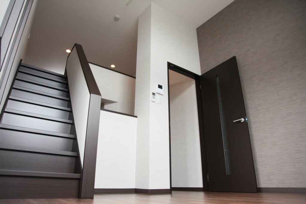 玄関からリビングまでの導線に設けた廻り階段
