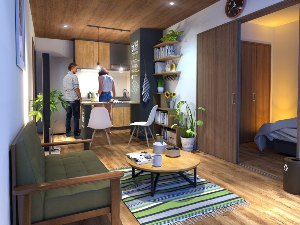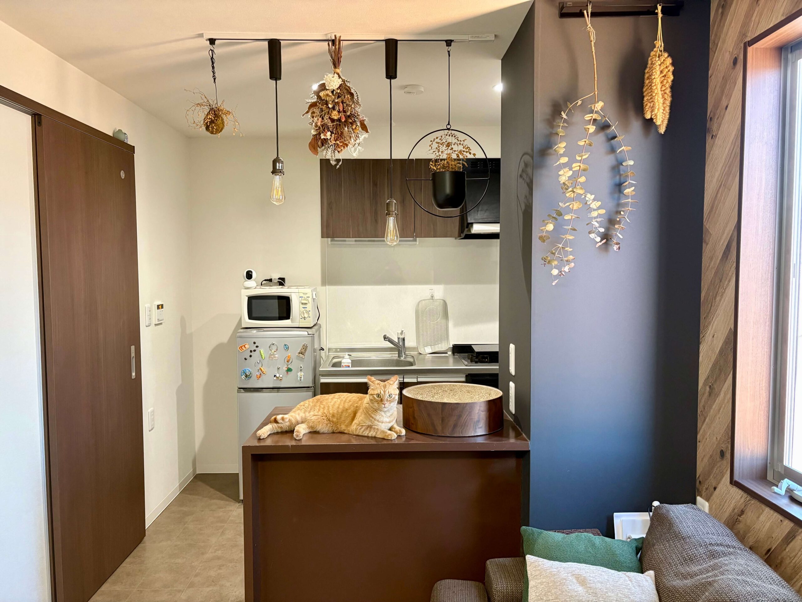 彼女と住むのに少し広めの部屋を探していました。この部屋に決めた理由は、彼女はキッチン周りが充実していること、僕は全体的なデザインが気に入ったからです。派手すぎず、シンプルすぎず、ちょうどいいですし、ダウンライトも付いていてお洒落だなと思いました。
