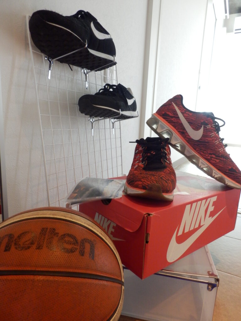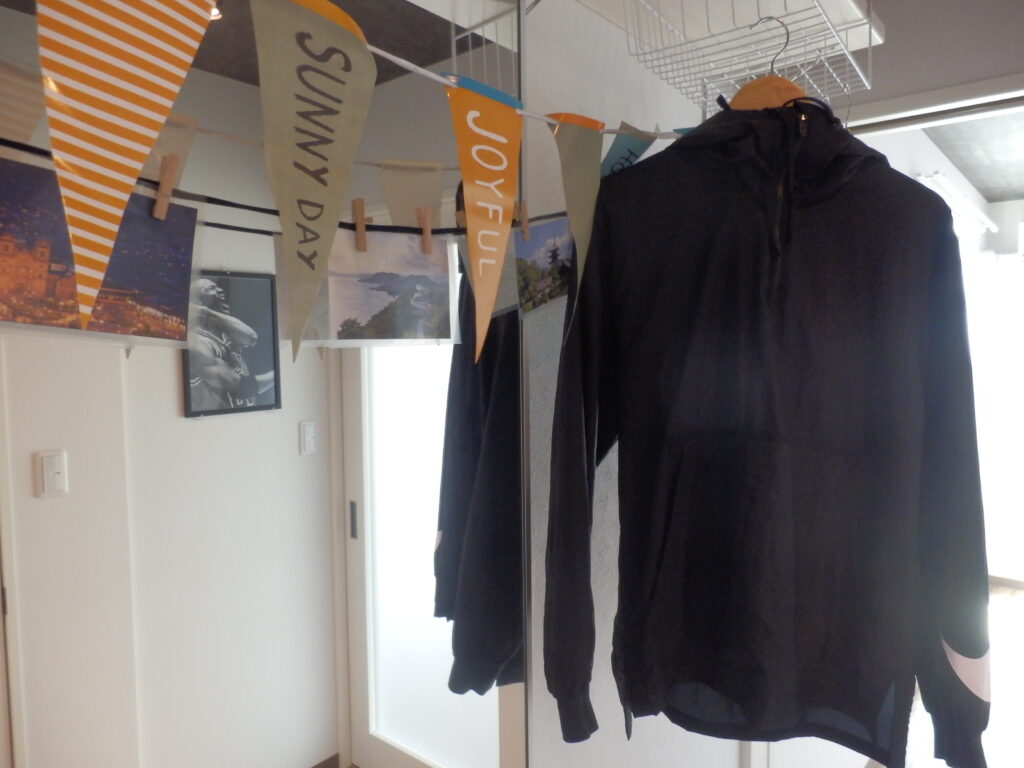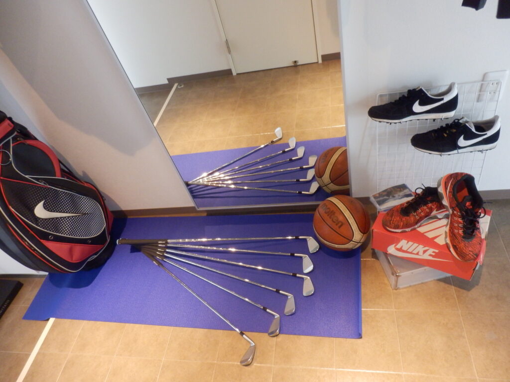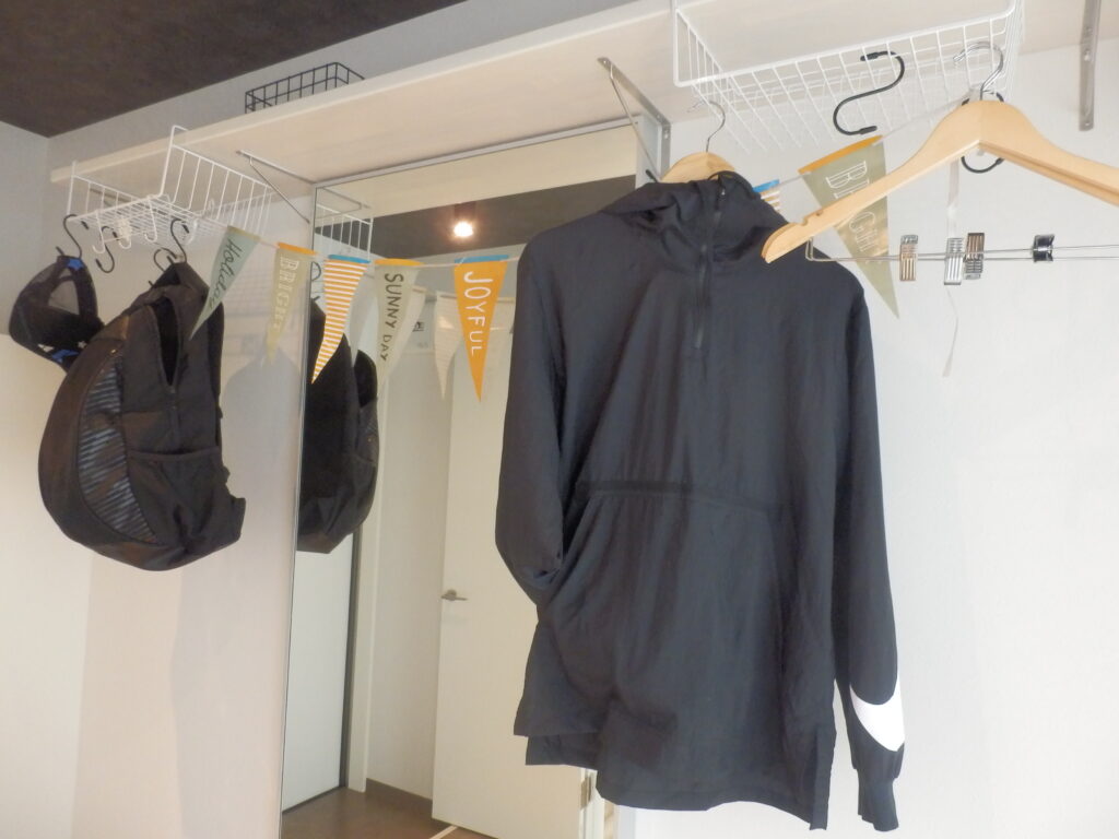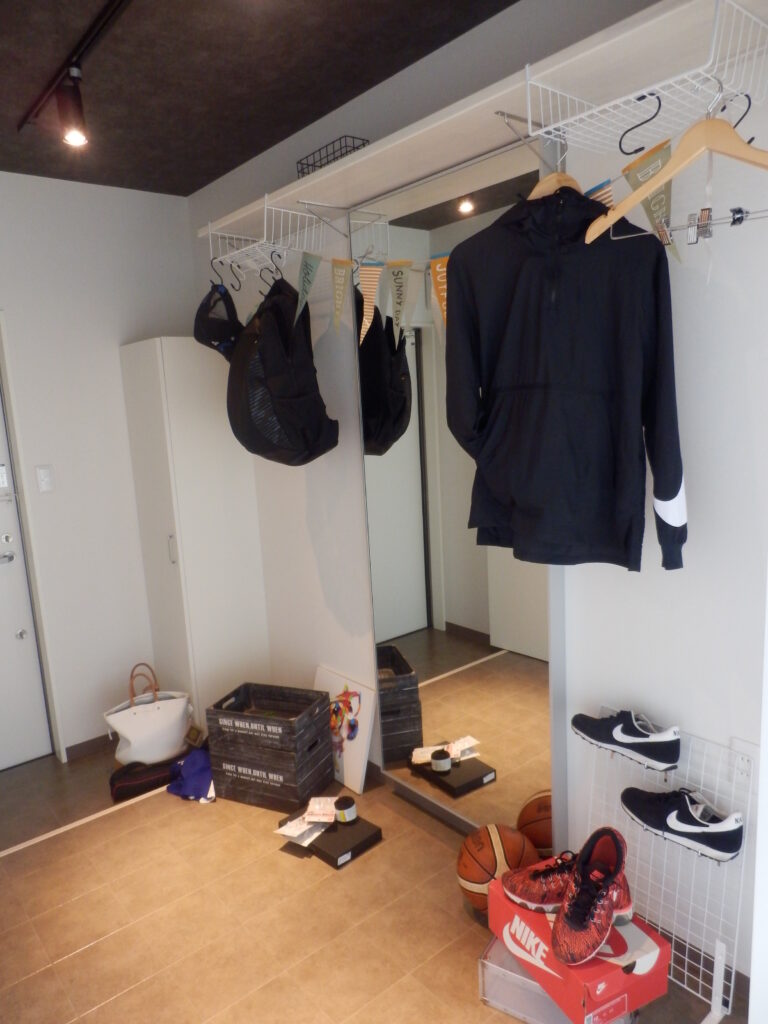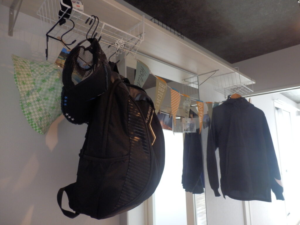 大型ウォールミラーやスポットライトも設置しているので、ここで新しく買ったウェアを合わせてみたり、グッズのメンテナンスをしたりと自由に使えます。