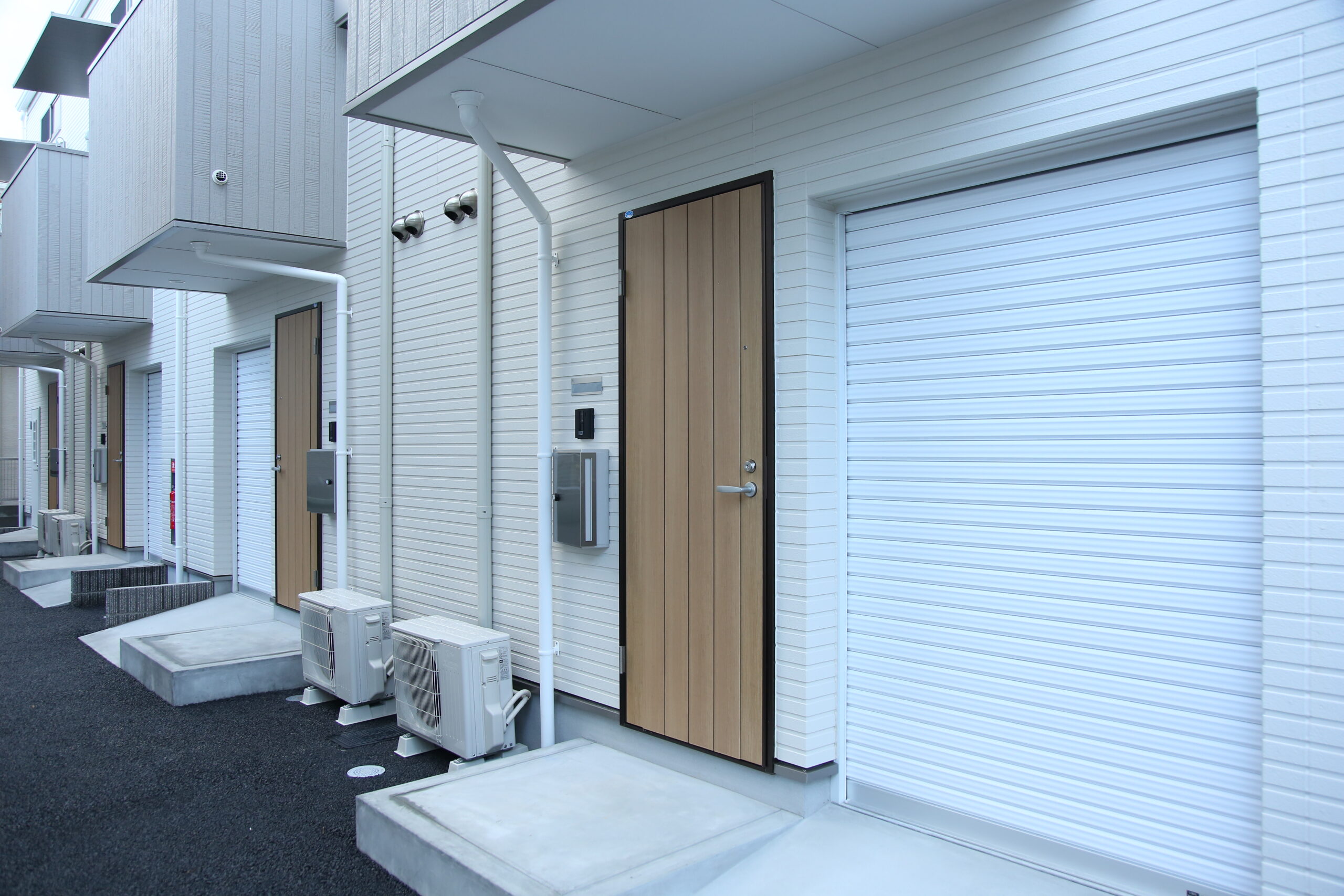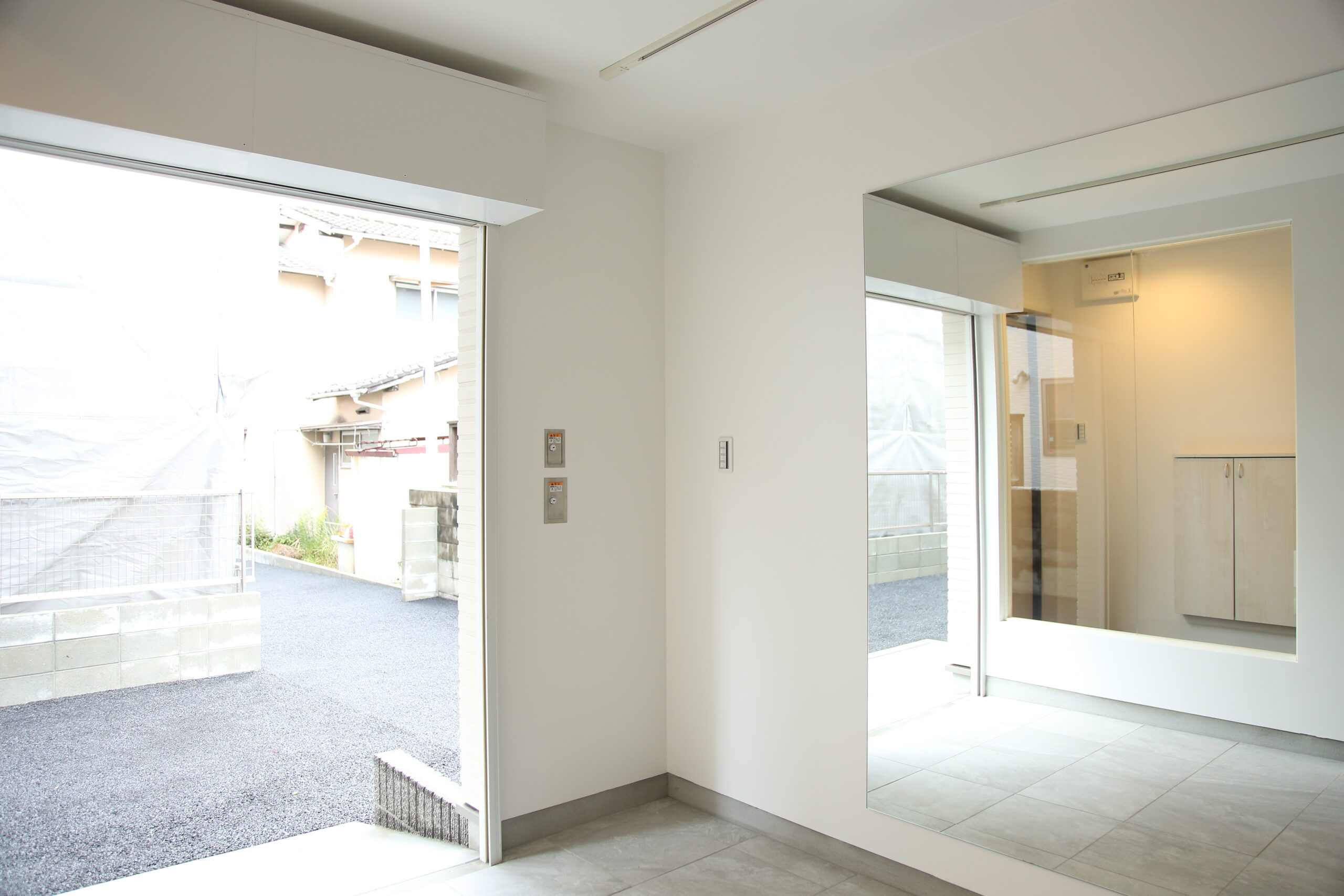 電動シャッターで開閉し、自転車やバイクの乗り入れも可能にしています。
