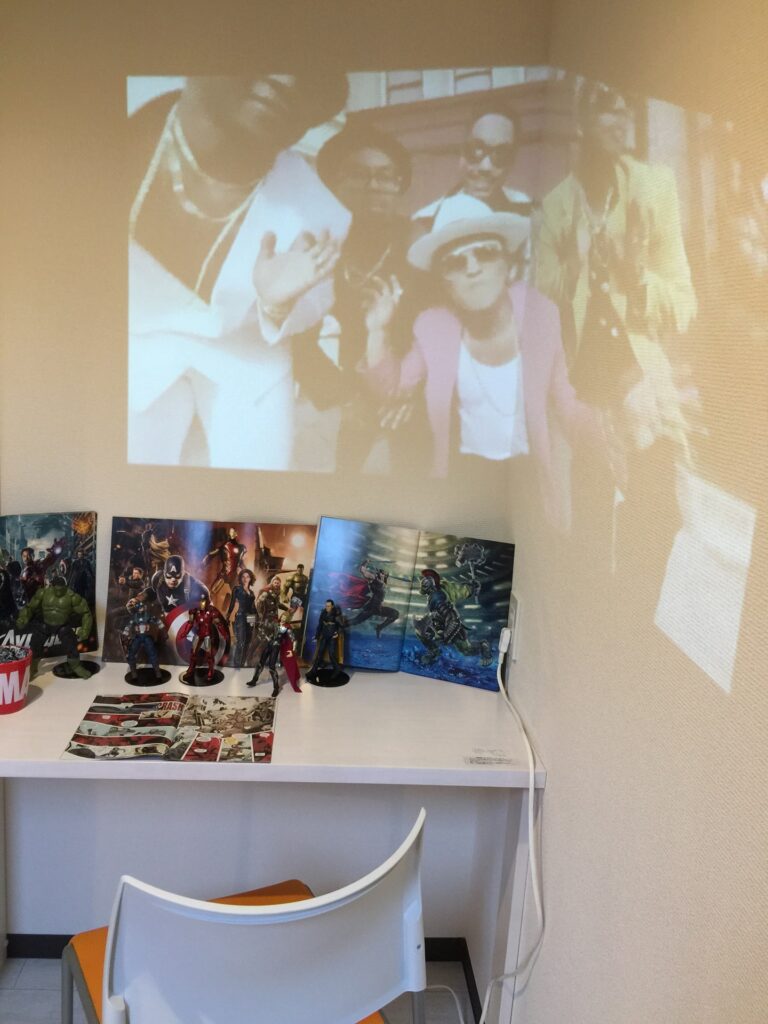 壁の一面に備え付けた本棚には、約1000冊が収容可能。デスク周りにはコンセントも設置されているので、PC作業もできます。喫茶店やカフェに行かずとも、生活空間とは違うトクベツな空間を提供します。