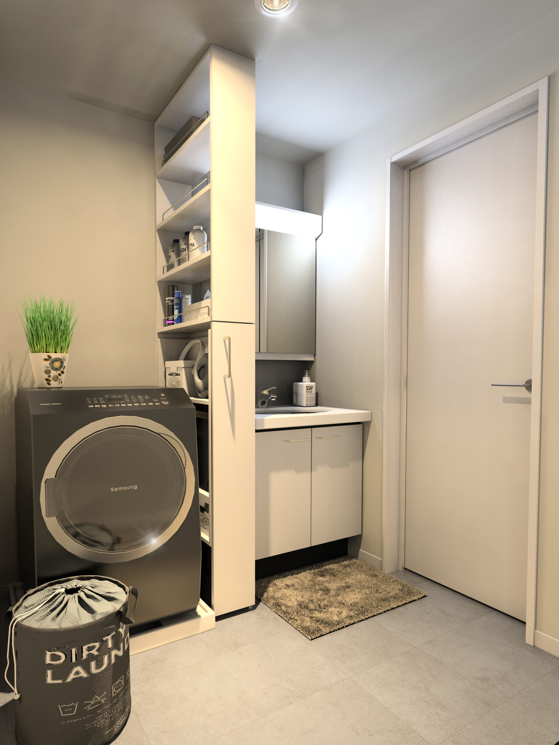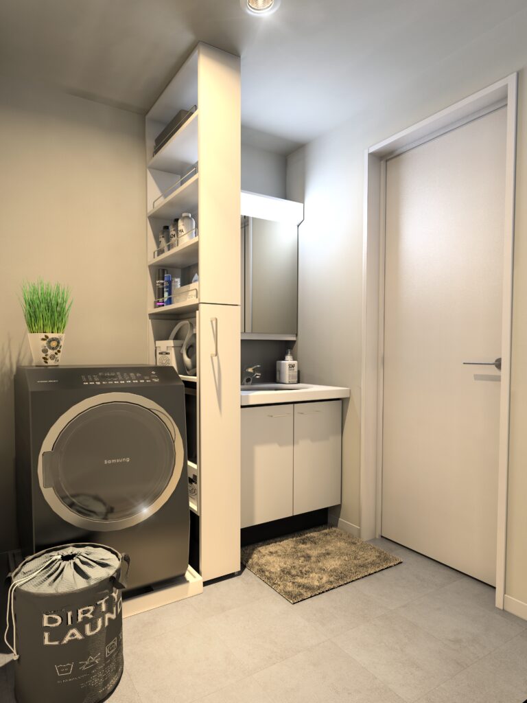 洗剤やシャンプーのストック掃除用具など、置き場所に困りがちな生活用品をすっきり収納できるスペースを確保。置き場所に頭を悩ませる必要がなくなります。