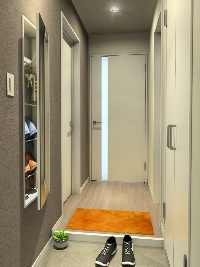 壁や構造の隙間を有効活用したニッチ収納で、雑然としがちな生活用品をスッキリ収納できます。